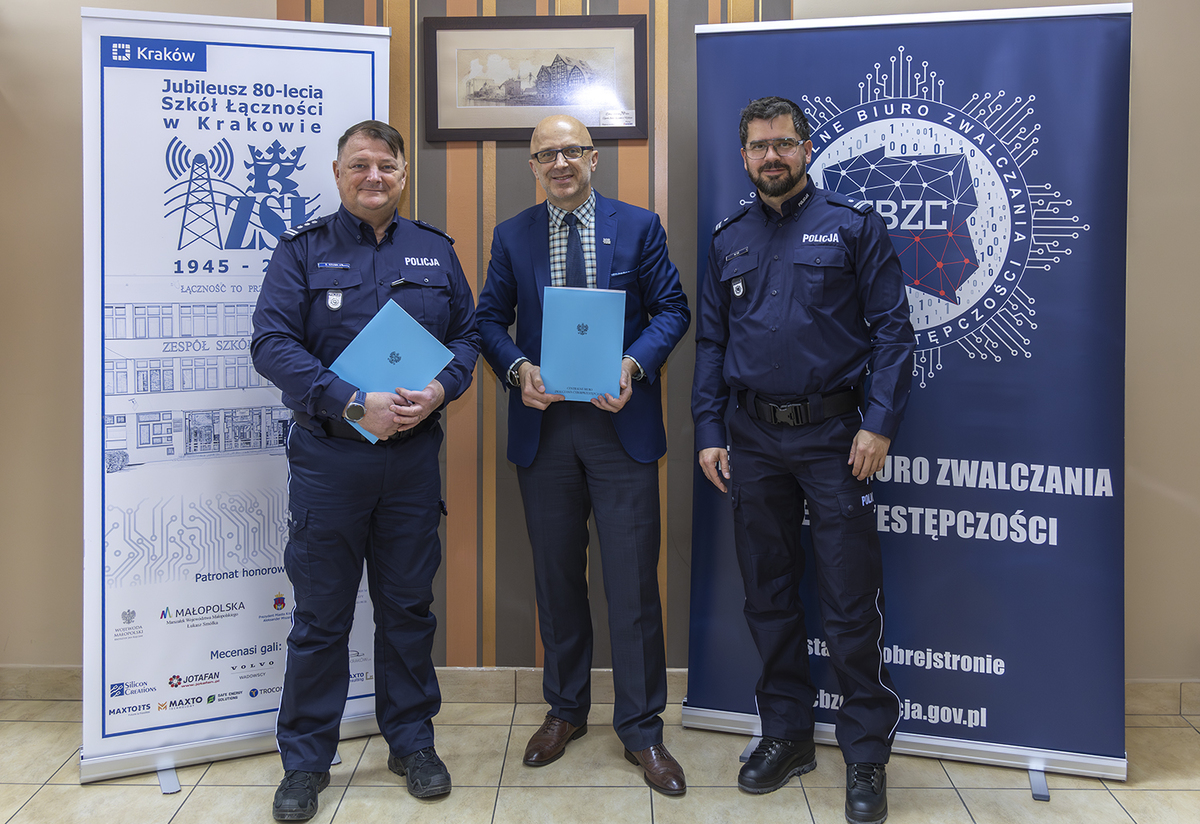 Zarząd w Krakowie Centralnego Biura Zwalczania Cyberprzestępczości podpisał porozumienie o współpracy z Zespołem Szkół Łączności im. Obrońców Poczty Gdańskiej w Krakowie. Na stosownych dokumentach swój podpis złożył Naczelnik Zarządu w Krakowie Centralnego Biura Zwalczania Cyberprzestępczości - insp. Sławomir Szumilas oraz Dyrektor Zespołu Szkół Łączności - mgr inż. Paweł Kucharczyk w obecności Naczelnika Wydziału Wywiadu Kryminalnego Zarządu w Krakowie CBZC - podinsp. Wojciecha Lisa.