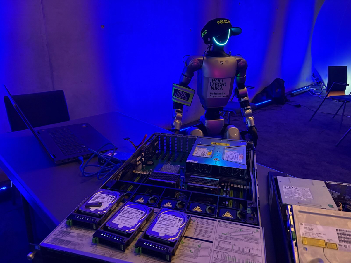 Przygotowane przez Biuro stoisko profilaktyczno-promocyjne od pierwszych chwil przyciągało uwagę tysięcy odwiedzających, oferując unikalne połączenie edukacji z fascynującym światem informatyki śledczej. Przestrzeń ta została zaprojektowana tak, aby każdy – od najmłodszych entuzjastów technologii po seniorów – mógł zobaczyć, jak w praktyce wygląda zabezpieczanie cyfrowych dowodów. Obok strefy wiedzy zaprezentowano specjalistyczny sprzęt w postaci profesjonalnej stacji roboczej oraz otwartych dysków i laptopów. Ten techniczny aspekt ekspozycji, imitujący proces ekstrakcji danych, pozwolił zwiedzającym zajrzeć za kulisy pracy cyberpolicjantów.