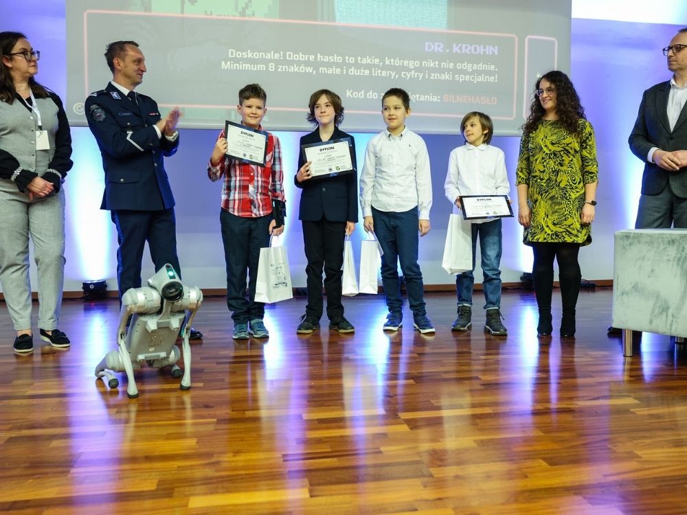 Nieodłącznym elementem finału było rozstrzygnięcie konkursu dla uczniów. Kreatywność młodzieży przerosła nasze oczekiwania, gdyż wpłynęły aż 884 prace. Uczniowie tworzyli w nich materiały profilaktyczne w modelu peer-to-peer, czyli od uczniów dla uczniów. Poziom i różnorodność tych zgłoszeń były wyjątkowe. Młodzi ludzie trafnie zdiagnozowali problemy poprzez wykorzystanie szerokiego spektrum form wyrazu obejmującego poruszające filmy i plakaty, interaktywne quizy dotyczące hejtu czy kradzieży tożsamości oraz autorskie utwory muzyczne. Te ostatnie szczególnie nas ujęły i udowodniły, że o bezpieczeństwie można mówić także językiem sztuki i emocji.